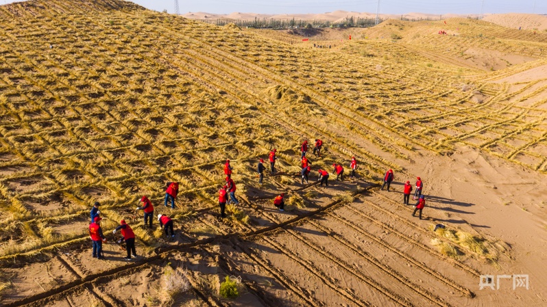 治沙现场(央广网记者 寇刚 摄)
