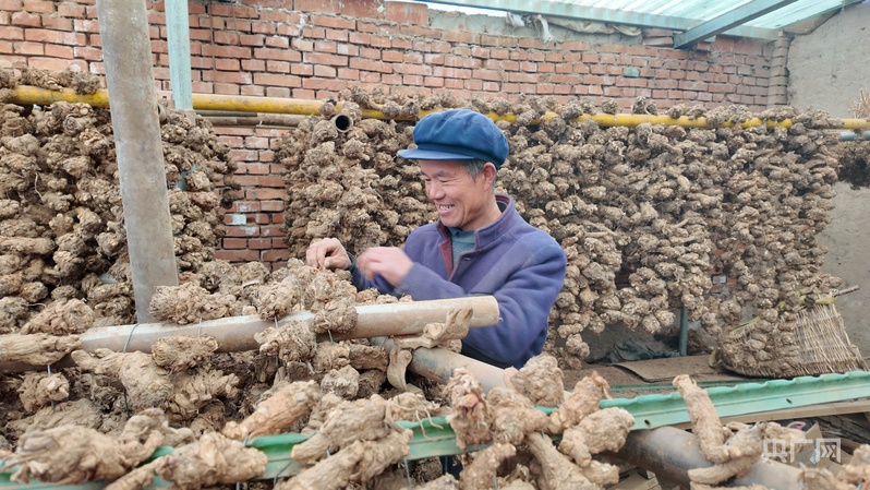 村民曾玉成正在挑拣当归头(央广网记者 魏晋雪 摄)