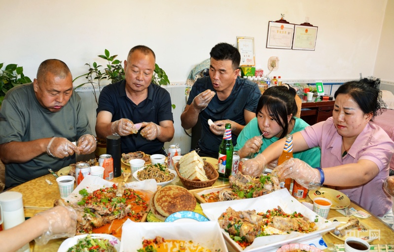 杨东掌村村民杨世军家经营大件羊肉近30年,其家人凭精湛手艺获评“大件羊肉制作明星户”。依托本地新鲜优质羊肉食材,烹饪恪守“清水煮肉、秘方调味”古法,凉水下锅去浮沫,加红葱鲜姜等佐料慢炖两小时,再用热油加小米椒、韭菜、辣椒面等快炒提香,最终成就肥而不腻、瘦而不柴、嫩而不膻的绝佳口感。