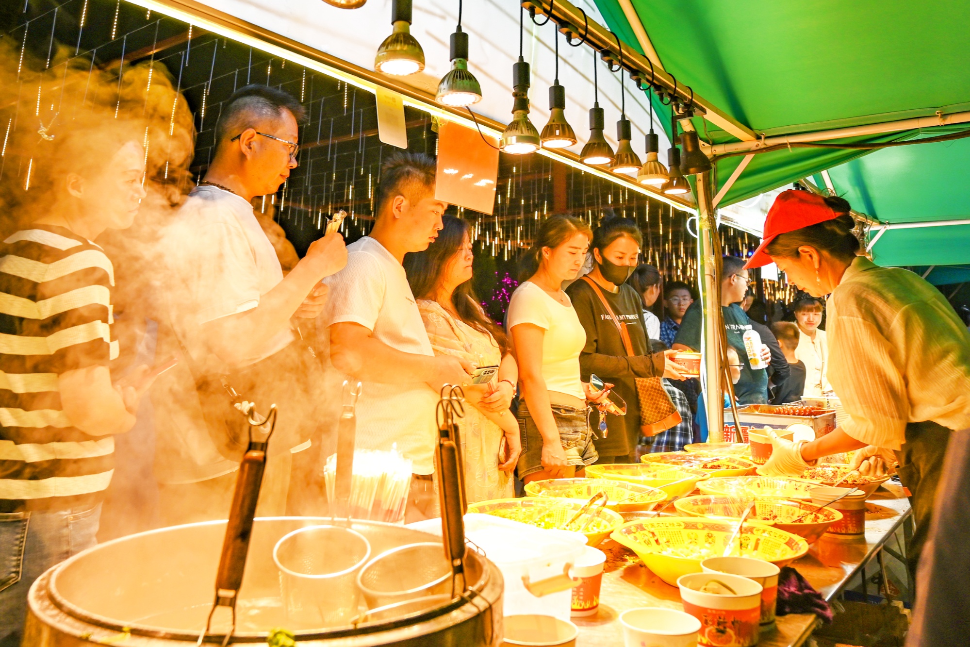 这场沉浸式消费盛宴,充分印证了“夜经济+文化+休闲”模式的吸引力,128个美食、游乐、商品摊位共同构筑了繁荣的夜间消费生态。商务、公安、市场监管、城管、消防、市容环卫等部门协同配合,做好夜市安全巡查、食品抽检、市容维护、垃圾清运、值班值守、应急处置等工作,协同筑牢“安心消费”基石。