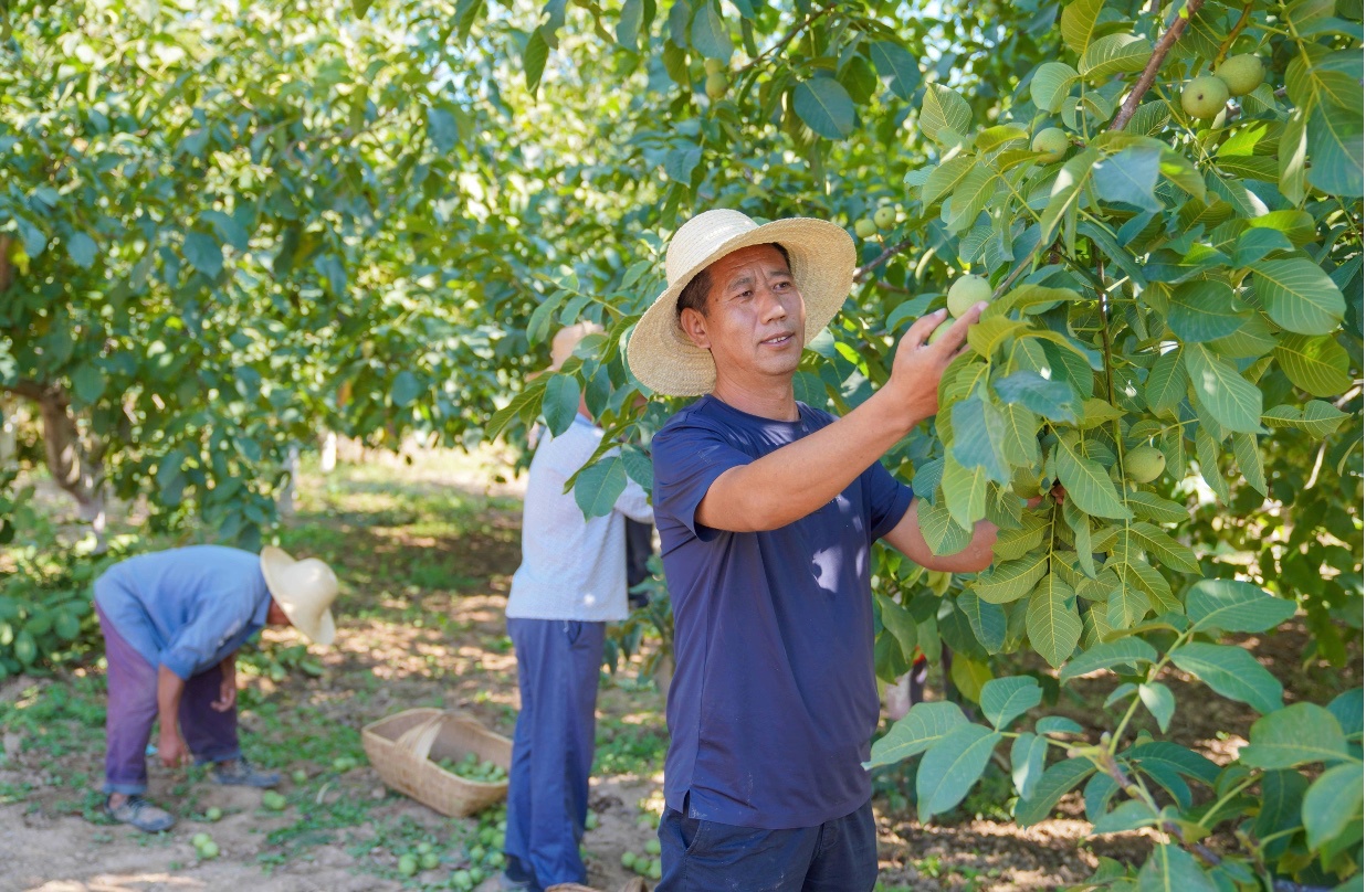 群众采摘成熟的核桃(成县县委宣传部供图)