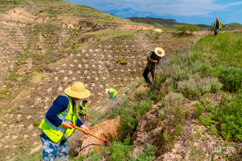 在造林现场,火彦君亲自演示了“鱼鳞坑”的挖法:长1.2米,宽0.7米,深0.3米的反坡坑,保持30度倾斜。“别小看这个坑,它能装100斤水。雨季来时,水分能通过土层慢慢下渗,既栽树又保水土。”火彦君告诉记者,采用这种方法后,树坑里的水分保存时间从原来的2天延长到了10天左右。