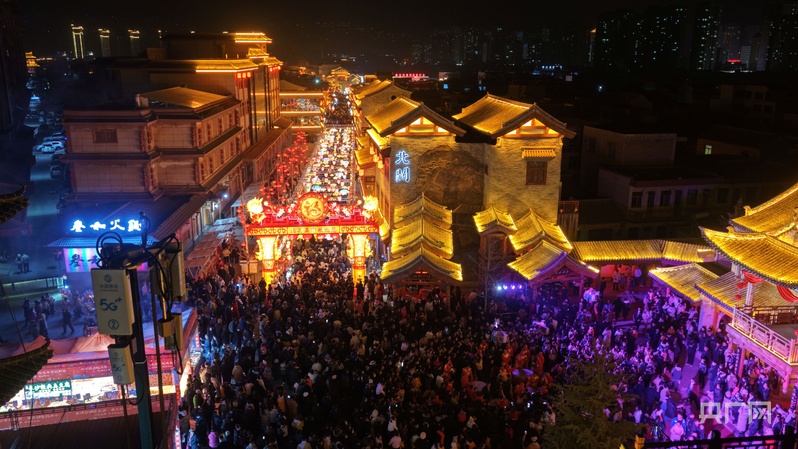 夜幕下的北关正街,民俗彩灯次第点亮;李家龙宫内,《梦回陇西堂》沉浸式演出华丽上演;双龙口景区同步开启“灯潮幻影·飨乐年华”光影游园会,酷炫灯光秀营造出斑斓陆离的瑰丽景象。